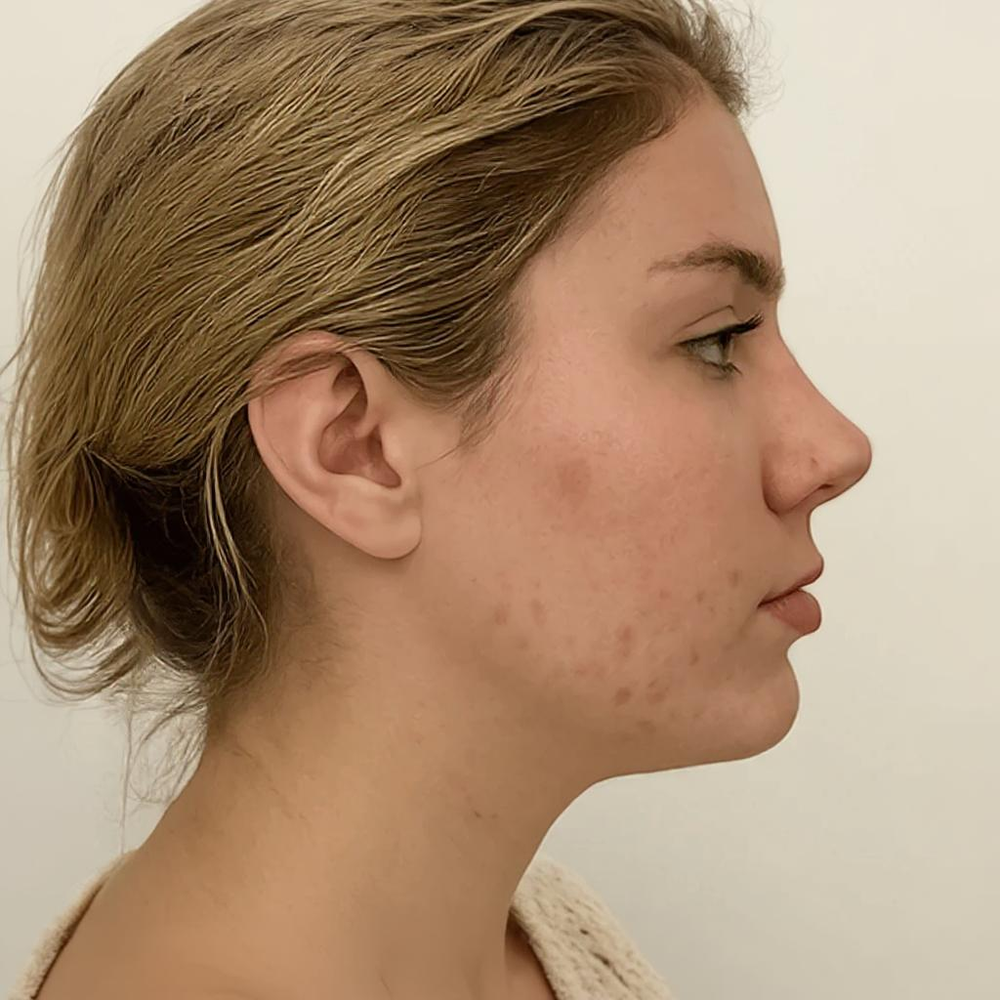 Hun strålede med yngre-udseende hud, langsommere aldring og forbedret cellulær restitution. Hævelser er væk, og hendes kæbelinje er markant defineret.