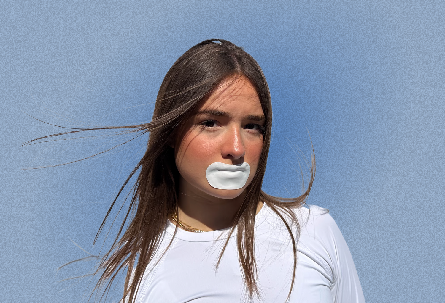 Ja, mundtaping er sikkert for de fleste, men tal med en sundheds­faglig person, hvis du har vejrtræknings­problemer eller andre helbreds­mæssige bekymringer. Hvis det er din første gang, så anbefaler vi at klippe et lille hul i midten, så du kan trække vejret igennem munden og blive vant til mundtaping.
